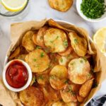 The moment your chips are out of the air fryer, sprinkle them generously with seasoned salt. I love adding fresh parsley or chives on top for a pop of color and a subtle fresh note. These chips taste best warm and crispy, so dig in right away!