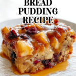 This bread pudding with apples combines toasted brioche or challah bread cubes with tart Granny Smith apples, walnuts, and dried cranberries, all soaked in a rich spiced custard and baked until golden. Served warm with a luscious homemade caramel sauce, this dessert offers a perfect balance of sweet, fruity, and nutty flavors ideal for cozy gatherings or special occasions.