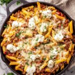 - Add Cheeses and Bake: Dollop the ricotta cheese evenly over the pasta mixture. Sprinkle shredded mozzarella and parmesan cheese on top. Transfer the skillet to the preheated oven and bake for 20 minutes. For a crispier cheesy topping, switch to broil and cook for an additional 2-3 minutes.