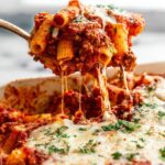 Classic baked ziti with rich Bolognese sauce, creamy ricotta mixture, and layers of mozzarella and Parmesan cheese, baked to bubbly perfection. A comforting Italian-American casserole perfect for family dinners and make-ahead meals.