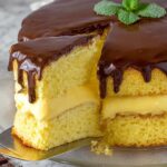 Classic Boston Cream Pie features two layers of tender vanilla cake filled with a rich, silky vanilla custard and topped with a glossy chocolate glaze. This delightful dessert combines fluffy cake, creamy filling, and decadent chocolate for a perfect treat.