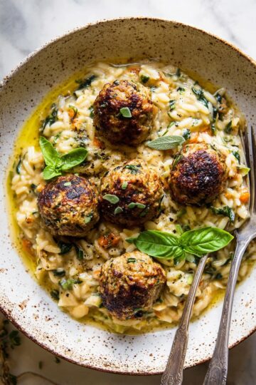 Garlic Butter Chicken Meatballs with Creamy Orzo Recipe