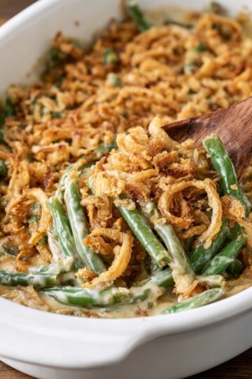 Green Bean Casserole with Cheddar and Crispy Onion Strings Recipe