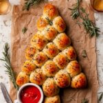 This Pull-Apart Cheesy Garlic Christmas Tree Bread is a festive, fun, and easy-to-make appetizer that features buttery, garlic-infused biscuit dough filled with gooey mozzarella. Perfect as a crowd-pleasing holiday snack or appetizer, it’s baked to golden perfection and served with tasty dipping sauces like marinara or pesto.