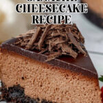 Refrigerate the cheesecake for at least 4 hours — overnight is even better — so it fully sets and the flavors meld. Before serving, add chocolate shavings or a light dusting of cocoa powder for a pretty finish.