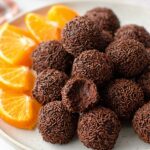 Delicious and creamy Chocolate Orange Truffles made with dark cooking chocolate, fresh orange zest, and rich whipping cream, coated in chocolate sprinkles. Perfect as an elegant dessert or a sweet snack for chocolate lovers.