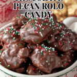 Use a tablespoon to scoop generous mounds of the melted chocolate pecan mixture over each Rolo. If you like, sprinkle a little sea salt or your choice of sprinkles on top for extra flair and flavor. Let the candies sit until fully set—about 2 hours at room temperature or pop them in the fridge to speed things up.