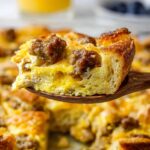 A hearty and savory Christmas Breakfast Casserole perfect for holiday mornings. This dish features seasoned ground pork sausage, eggs, milk, bread cubes, and sharp cheddar cheese baked to golden perfection. It can be prepared ahead of time by refrigerating overnight and baked fresh in the oven before serving.
