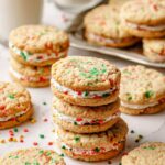 Delight in the festive flavor of Christmas Oatmeal Cream Pies, featuring soft oatmeal cookies studded with colorful sprinkles and sandwiched with a creamy vanilla-almond filling. These charming sandwich cookies are perfect for holiday gatherings and gift-giving, combining classic ingredients with a fun seasonal twist.