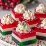 Christmas Ribbon Salad is a festive, layered gelatin dessert featuring vibrant lime, lemon-cream, and cherry layers. This colorful and creamy salad combines tangy Jell-O flavors, fluffy marshmallows, and smooth cream cheese to create a perfect holiday treat that’s refreshing and visually appealing.