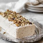 A festive and creamy Christmas semifreddo featuring roasted almonds, walnuts, and raisins, delicately spiced with cinnamon, cloves, nutmeg, and vanilla. This no-bake frozen dessert is creamy, nutty, and perfect for holiday celebrations.