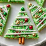These festive Christmas Tree Rice Krispie Treats are a fun and easy holiday snack that combines classic marshmallow rice cereal squares with colorful green food coloring, pretzel stick trunks, and decorative sprinkles. Perfect for parties, kids, or holiday gatherings, they come together quickly with simple ingredients and are sure to delight.