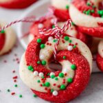 - Variation: One year, I swapped the red dough for a bright green gel color and finished the wreaths with crushed pistachios instead of sprinkles—it was a huge hit and gave a lovely nutty crunch.