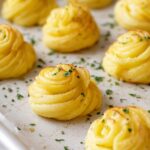 This Best Duchess Potatoes recipe features creamy, rich Yukon gold potatoes blended with butter, cream, Parmesan cheese, and egg yolks, piped into elegant swirled mounds and baked to golden perfection. Perfect as a sophisticated side dish for special occasions or holiday meals.