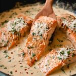 Marry Me Salmon is a delicious, creamy skillet salmon recipe featuring perfectly seared fillets nestled in a luscious sauce of garlic, sun-dried tomatoes, spinach, heavy cream, and Parmesan cheese. This elegant yet easy dish is perfect for a special weeknight dinner or entertaining guests.