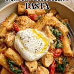 This Creamy Tomato Pesto Pasta with Chicken is a flavorful and comforting dish combining tender rigatoni pasta with a rich tomato-pesto cream sauce, seared seasoned chicken, roasted red peppers, and fresh spinach, topped with creamy burrata for an indulgent finish.