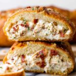 This Chicken Bacon Ranch Stromboli features tender shredded chicken, crispy bacon, and creamy ranch dressing wrapped in golden, baked pizza dough. It's a flavorful, quick-to-prepare meal perfect for weeknight dinners or game-day gatherings.