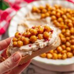 A vibrant and crunchy snack or appetizer featuring crispy roasted chickpeas tossed in a sweet and spicy hot honey glaze, paired perfectly with smooth and tangy whipped feta cheese. This dish combines textures and flavors for a delightful treat ideal for serving with crusty bread or pita.