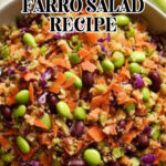 A vibrant and nutritious Farro Salad tossed with roasted sweet potatoes, crunchy vegetables, and a flavorful spicy peanut dressing. This wholesome dish combines tender farro with shredded red cabbage, carrots, edamame, adzuki beans, and roasted cashews for texture and protein. The zesty, creamy peanut dressing with lime, soy sauce, maple syrup, and Sriracha adds a perfect spicy kick, making it a refreshing and satisfying meal or side dish.