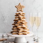 I’ve wrapped the cookie tree in clear cellophane tied with a festive ribbon to give as a gift, and I’ve also displayed mine on a pretty wooden platter surrounded by pine sprigs and mini ornaments for a charming holiday dessert table center.