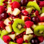 A vibrant and refreshing Easy Christmas Fruit Salad featuring a delightful mix of fresh apples, grapes, pomegranate arils, kiwis, and berries, lightly coated with honey and lime juice for a festive and healthy treat perfect for the holiday season.