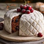 - Decorate and serve: Once cooled, the cake may be eaten plain or decorated with marzipan and fondant as traditional. For decoration, roll out marzipan and fondant with icing sugar dusting, cover the cake smoothly, and add diamond quilting with silver balls and cherries if desired. Serve with pouring custard for a classic accompaniment.
