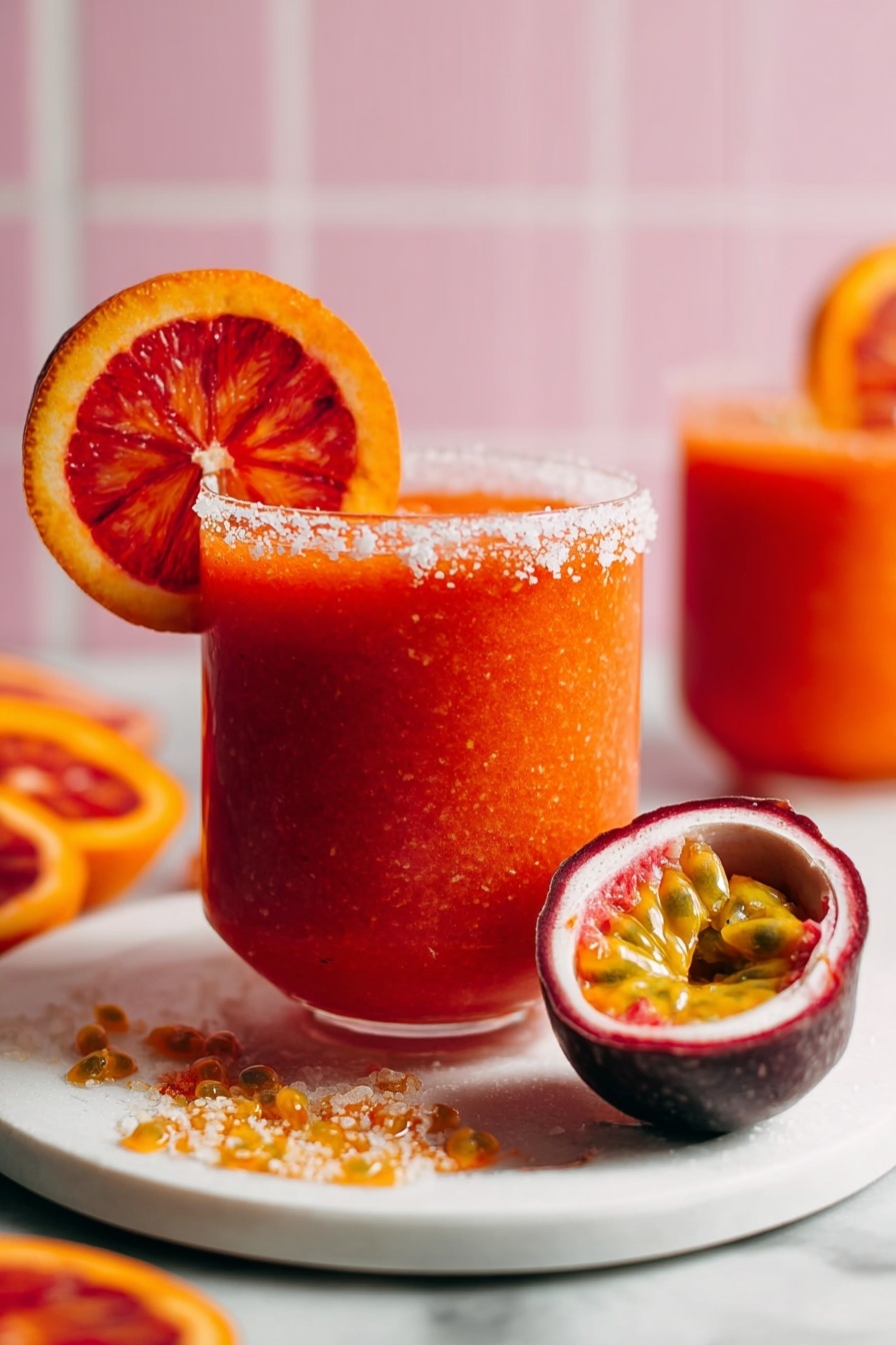 Before you start blending, a quick note about picking your ingredients: quality mezcal really shines here, and using seedless frozen passion fruit purée makes the texture silky smooth. If you’re a fan of fresh juice, grab a ripe blood or navel orange to add a citrus boost.