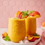 A refreshing Frozen Peach Daiquiri made with frozen peaches and pineapple, fresh mint, lime juice, and a touch of maple syrup, blended to smooth perfection. Optional light rum adds a boozy kick for a perfect summer cocktail or mocktail.