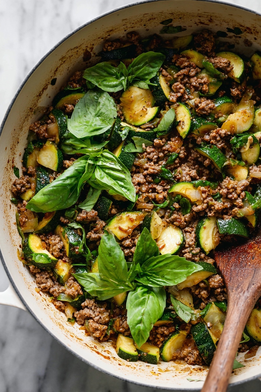 I reheat leftovers gently on the stovetop, adding a splash of water or broth to prevent dryness, stirring occasionally until warmed through. This method revives the dish best, keeping the beef tender and the zucchini moist without overcooking.