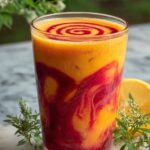 - Layer and Serve: Pour one third of the smoothie into a glass, then pour one third of the raspberry juice on top. Repeat the layers with the remaining smoothie and raspberry juice for a beautiful sunrise effect. Serve immediately to enjoy the fresh flavors and vibrant colors.
