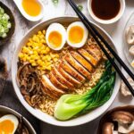 This homemade chicken ramen recipe combines tender chicken thighs, fresh baby bok choy, shiitake mushrooms, and perfectly cooked ramen noodles in a flavorful broth enhanced with ginger, garlic, and optional dashi powder or miso paste. Topped with corn, sesame oil, toasted sesame seeds, and green onions, this comforting bowl of ramen is easy to prepare on the stovetop and perfect for a hearty meal.