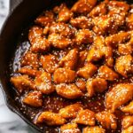 - Finish and serve: Remove the skillet from heat, sprinkle the toasted sesame seeds over the chicken, and serve hot over rice or your preferred side.