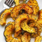 The squash is ready when it’s tender enough to pierce with a fork and the tops are lightly golden and crisp. Depending on your oven and slice thickness, this usually takes 20 to 25 minutes.