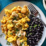 - Add Queso and Milk: When the rice is fully cooked, stir in the white queso dip and the milk. Fluff the mixture gently with a fork to combine all ingredients and create a creamy texture.