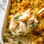 - Bake the Casserole: Place the casserole dish in the preheated oven and bake for 35 minutes, or until the stuffing topping is golden brown and the casserole is heated through.