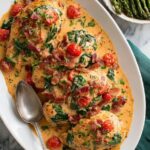 Smothered BLT Chicken is a flavorful and hearty dish featuring tender chicken breasts cooked to golden perfection, topped with a rich and creamy sauce made from crispy bacon, fresh spinach, grape tomatoes, garlic, parmesan cheese, and heavy cream. This comforting meal combines the classic flavors of a BLT sandwich with a creamy sauce to create an irresistible dinner option.