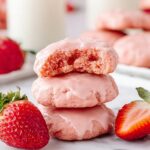 Delight in these Strawberry Sheet Cake Cookies, combining the moist texture of cake with the convenience of a cookie. These soft, sweet treats feature a luscious strawberry glaze on top, perfect for a fun dessert or snack.