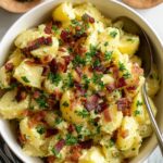 This classic German Potato Salad is a warm, tangy side dish featuring tender Yukon gold potatoes, crispy bacon, and a zesty vinegar-based dressing with mustard and fresh parsley. Perfect for serving alongside grilled meats or at a picnic.