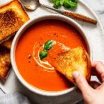 Hosting a gathering? Serve the tomato soup in mini cups with tiny grilled cheese skewers on the side for easy dipping. Or cut the sandwiches into bite-sized triangles for finger-friendly snacks. These little touches make this humble meal feel festive and fun.