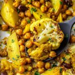 This vibrant and healthy sheet pan dinner features turmeric-spiced cauliflower, roasted potatoes, chickpeas, and olives, all infused with fresh lemon, garlic, and rosemary. Served with quinoa and a dollop of Greek yogurt, this Mediterranean-inspired meal is both flavorful and nutritious, perfect for a quick weeknight dinner.
