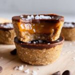 These Healthy Twix Cookie Cups are a delicious vegan and paleo-friendly treat featuring a nutty cookie base, a creamy caramel filling made from sunflower seed butter and maple syrup, and a rich dark chocolate topping. Perfect for a guilt-free indulgence, these mini cookie cups require no baking and come together quickly with simple, wholesome ingredients.