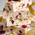 White Christmas Rocky Road is a festive no-bake treat featuring creamy white chocolate combined with marshmallows, toasted pistachios, glacé cherries, and desiccated coconut. This sweet, crunchy, and chewy confection is perfect for holiday gifting or satisfying your sweet tooth during the Christmas season.
